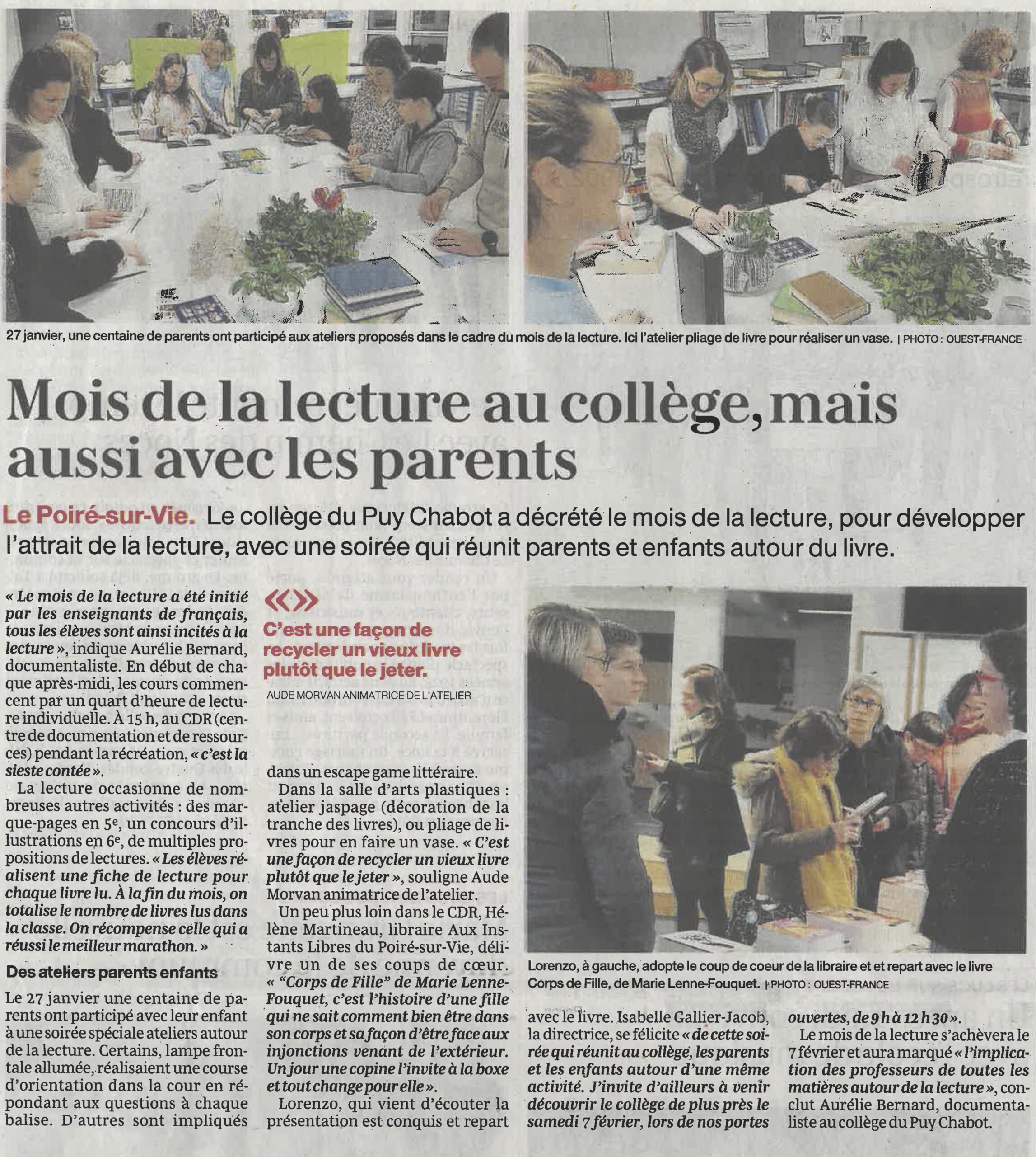Du lundi 12 janvier au vendredi 6 février, le collège du Puy-Chabot va vivre sa 2è édition du mois de la lecture.