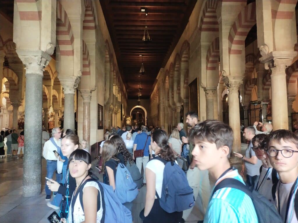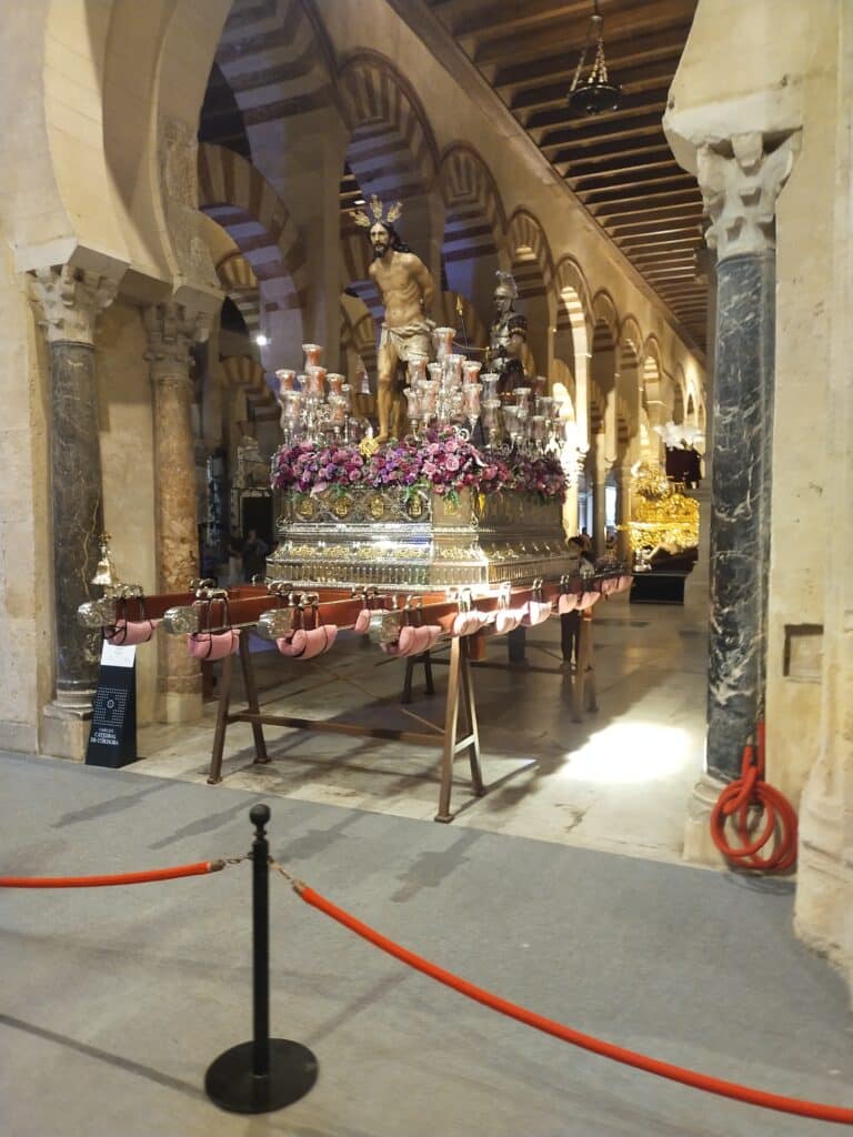 Ce matin après un transfert en car en direction de Cordou, une vue magnifique s’est offerte à nous, englobant la tour défensive, le pont romain et la mosquée. Dans cette dernière nous avons pu nous émerveiller de la fusion de l’architecture chrétienne et musulmane. La « forêt » des colonnes a été à la hauteur de sa renommée. Exceptionnellement une exposition des « pasos » processionels de la Semaine Sainte nous en a mis plein les yeux.