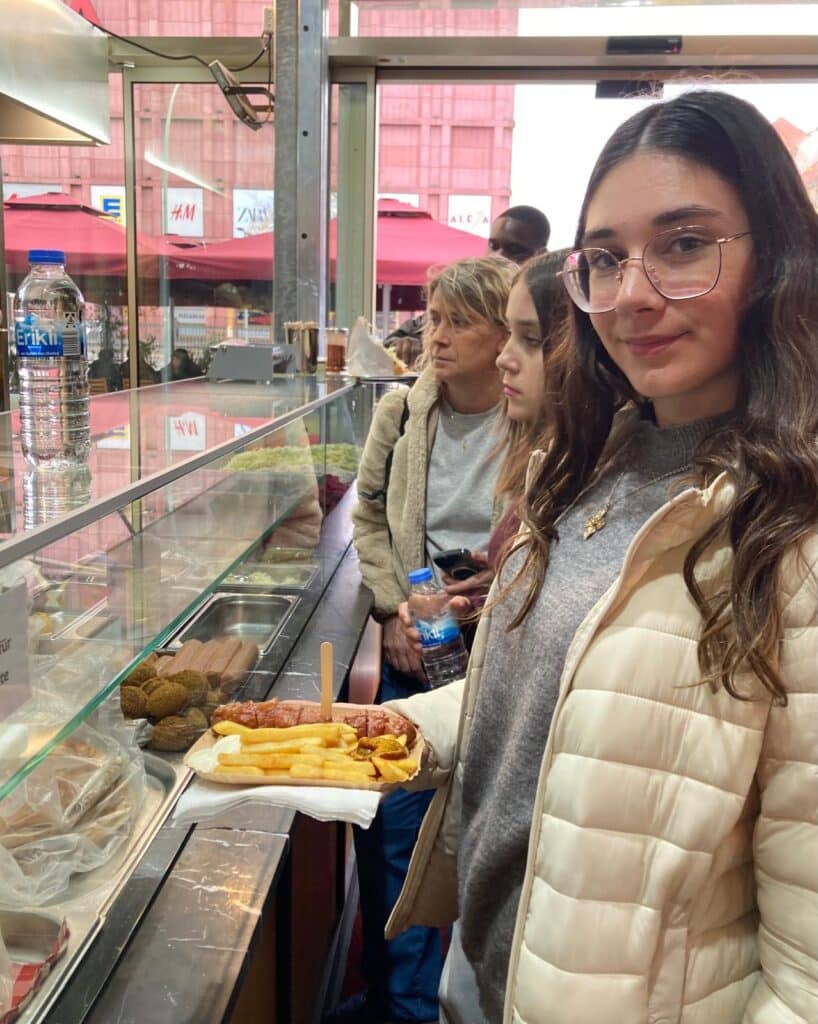Au menu ce midi : une Currywurst accompagnée de frites, spécialité berlinoise depuis 1949.