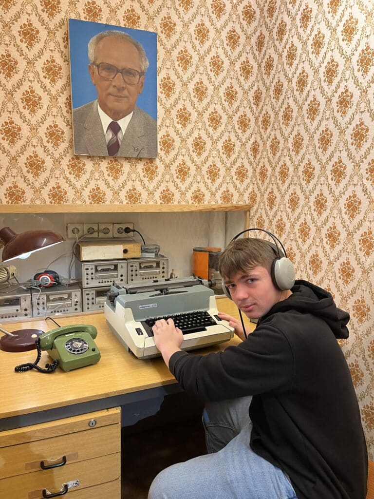 Après un petit déjeuner typiquement allemand, composé de petits pains, charcuterie, fromage et céréales, nous nous sommes dirigés vers le musée interactif de la RDA, où chacun a pu avancer à son rythme et explorer le quotidien d’un Allemand de l’Est.