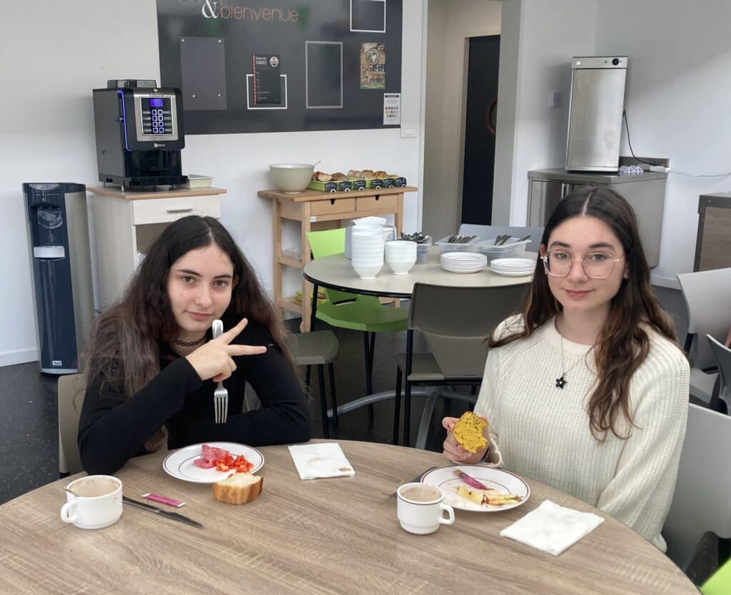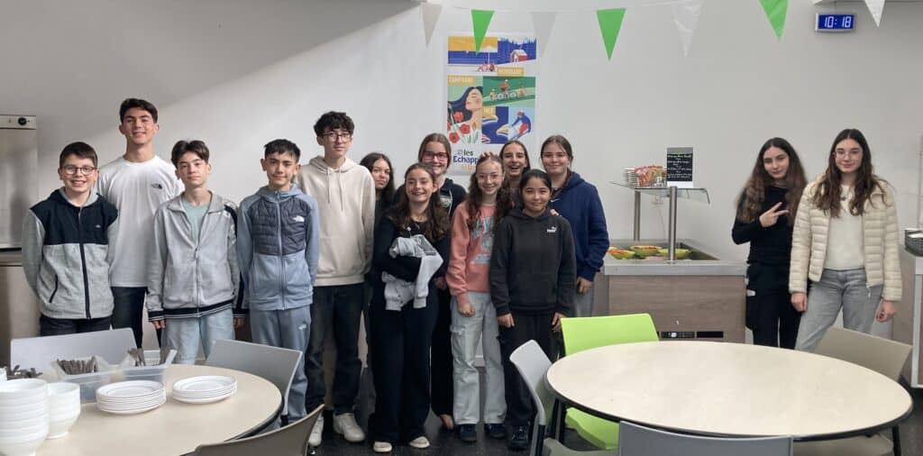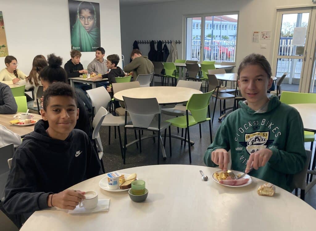 Cette semaine, les élèves germanistes de 3A et E ont pu déguster, dans la salle de restauration du personnel, un petit-déjeuner, tel qu’on le conçoit dans un pays germanophone, avec du jambon, du fromage, des œufs, des crudités, des fruits frais, des produits laitiers, des jus de fruits, des boissons chaudes, sans oublier des petits pains spéciaux (maïs, seigle, céréales, fruits secs).