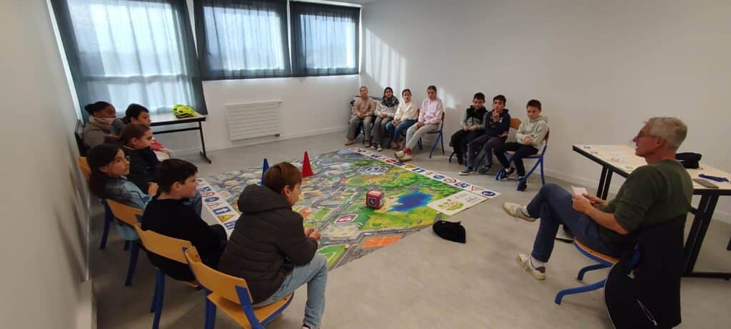 Les jeudi 20 et vendredi 21 novembre, les élèves de 6ème ont participé à deux ateliers de 45 minutes chacun visant à les sensibiliser aux déplacements aux abords du collège. Une partie plus théorique et une sous forme de jeu de plateau leur ont permis de (re)prendre conscience de l’importance du respect des règles de sécurité routière.