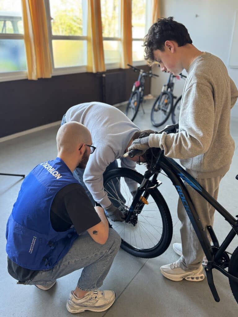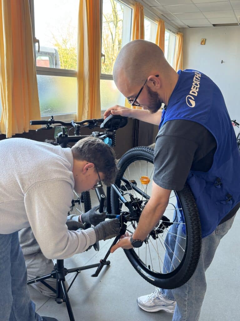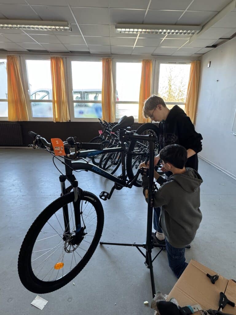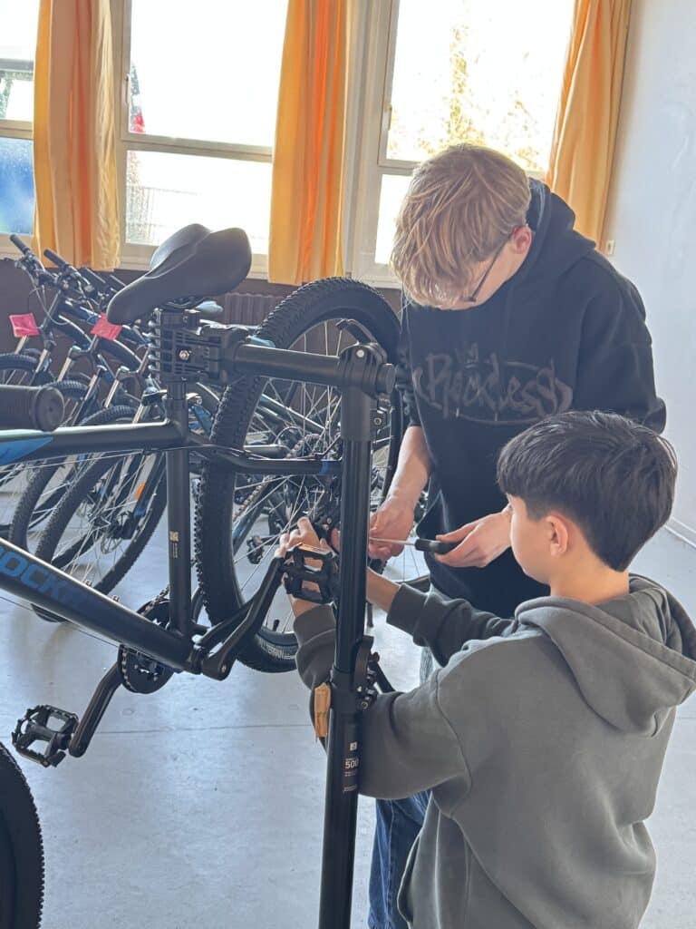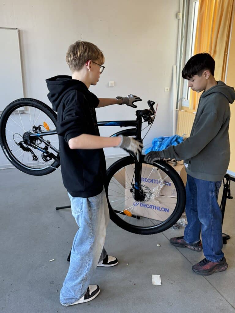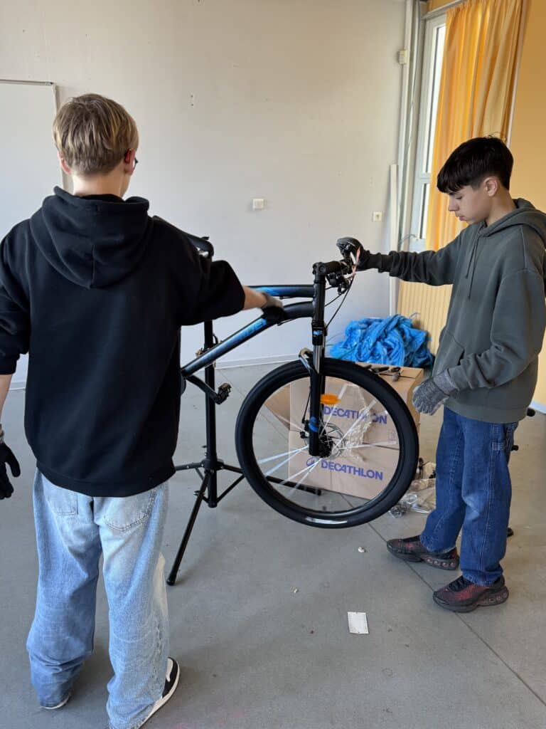 Le projet qui roule depuis deux ans se concrétise : 8 vélos ont été achetés pour le Collège auprès de Décathlon. Les vélos ont été montés mercredi dernier par un employé de Décathlon, accompagné d’élèves de l’option POP3 – Projet d’Orientation Professionnelle niveau 3e. Ces vélos seront utilisés dès mercredi prochain pour les tests de pratique du vélo au niveau 5e.