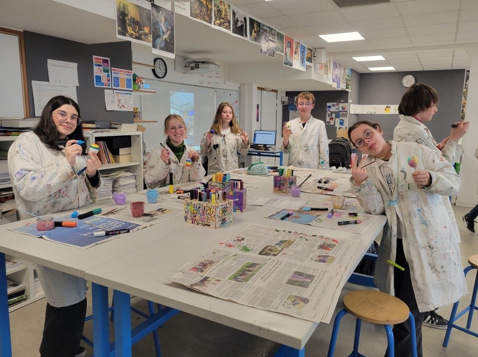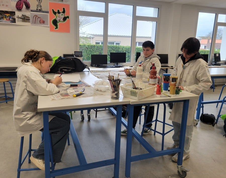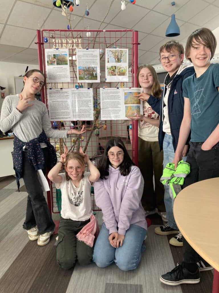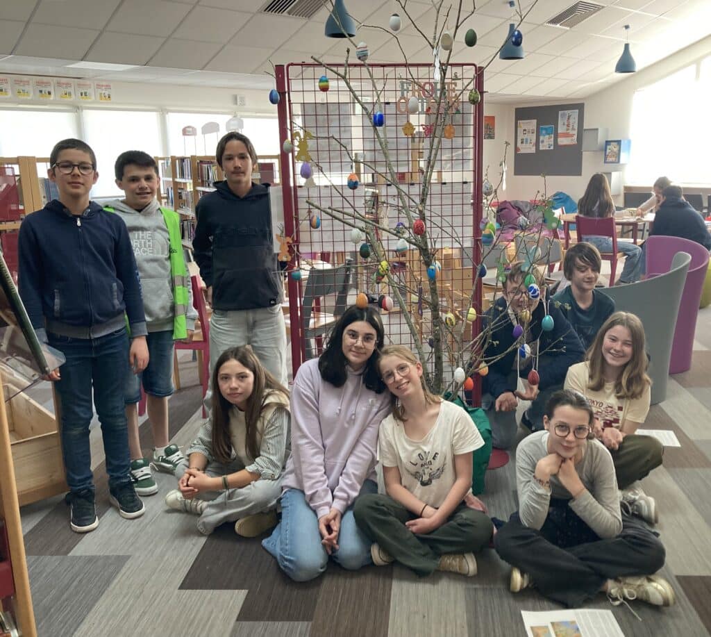 Les 3ème du projet culturel allemand, ainsi que les 5B germanistes, ont peint des œufs, afin de réaliser un arbre de Pâques, coutume allemande à l’origine païenne, puis liée à la résurrection du Christ, car symbole de vie et de renaissance. En Allemagne, à Pâques, les jardins sont décorés avec des œufs aux multiples couleurs et des lièvres, puisque ce sont eux qui, dans la légende, créent et apportent les œufs en chocolat.